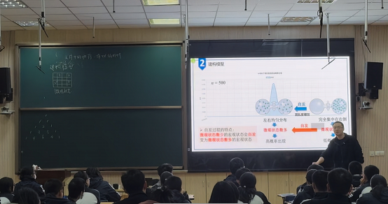在教学的核心环节,教师引导学生通过扎实的模型建构活动——从小球分布模型的数学推演,到利用网页工具模拟大量分子的分布趋势,将抽象的“混乱度”转化为可计算、可感知的“概率”。这一设计使得熵作为一个统计概念的物理意义得以直观呈现,为学生理解玻尔兹曼公式奠定基础,实现了从具体模型到规律的认知提升。