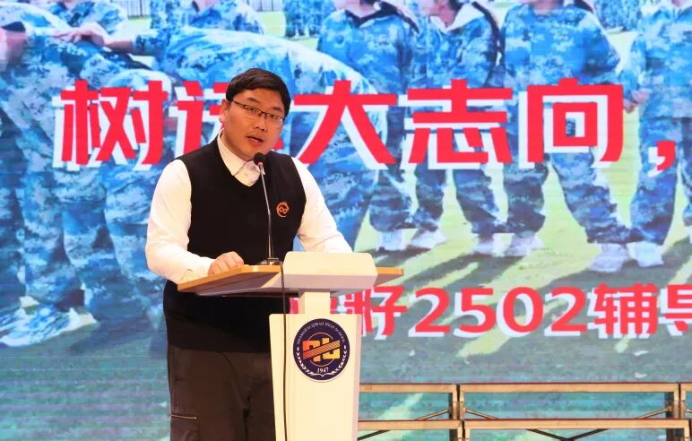 展示环节结束后,教师代表、石榴2502班辅导员姚尚科老师以“树远大志向,行报国之志”为题发言。他分享了新疆班与本地班同学在国防教育中互助共进、深化情谊的动人故事,指出这项活动不仅在同学们心中播下了报国的种子,也促进了不同文化背景下的理解和融合。姚老师还列举了从天山隧道建设到新疆发展的各项成就,以及历届七宝学子返乡支教、投身建设的实例,鼓励大家以实际行动接续奋斗。