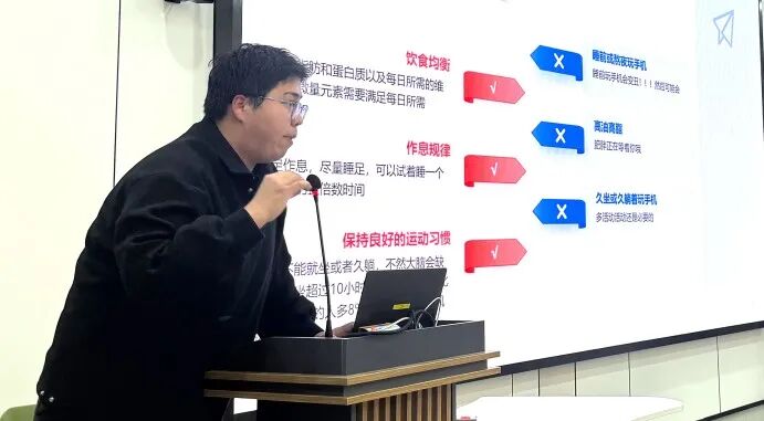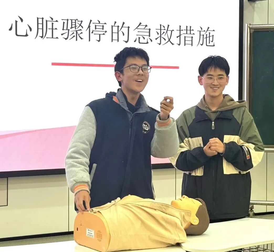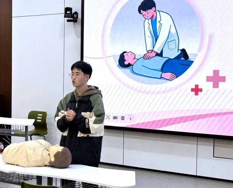 随后的健康教育讲座内容贴近学生实际,兼具科学性和实用性。穆斯塔帕同学以“脑科学与用脑健康”为主题,讲解大脑工作机制及科学用脑方法;王梓丞同学围绕“压力管理与心理调适”,分享情绪调节与心态建设的实用技巧;李仕泽同学则开展了校园急救技能培训,通过模拟演示和现场互动,帮助学生掌握心肺复苏和海姆立克急救法的基本操作,提升应急自救互救能力。