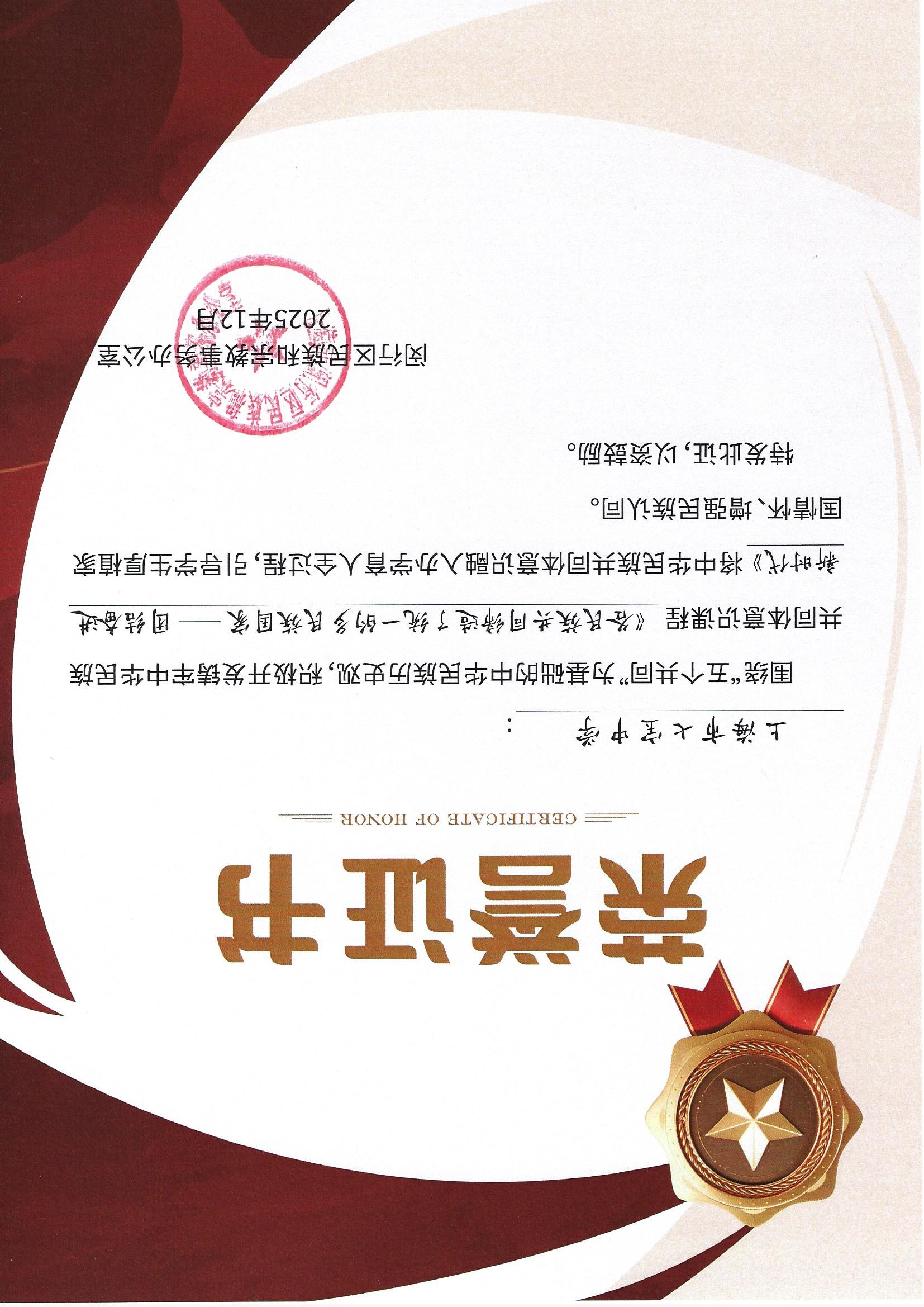 张毅统老师课程《各民族共同缔造了统一的多民族国家——团结奋进新时代》获闵行区民族和宗教事务办公室表彰