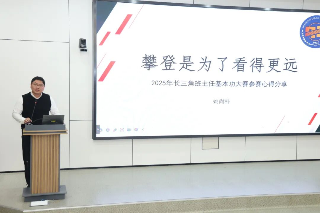 长三角班主任基本功大赛获奖教师姚尚科老师,以“攀登是为了看得更远”为题,讲述了长期备赛的沉淀与收获。他从学生成长需求出发打磨带班育人方略,以新疆棉田的真实故事重构主题班会,用家访中的真实案例细节刻画育人故事,最终斩获第十四届长三角地区中小学班主任基本功大赛综合奖(高中组)一等奖。他的分享印证了德育工作唯有扎根生活、贴近学生,才能真正触动心灵、引发共鸣。