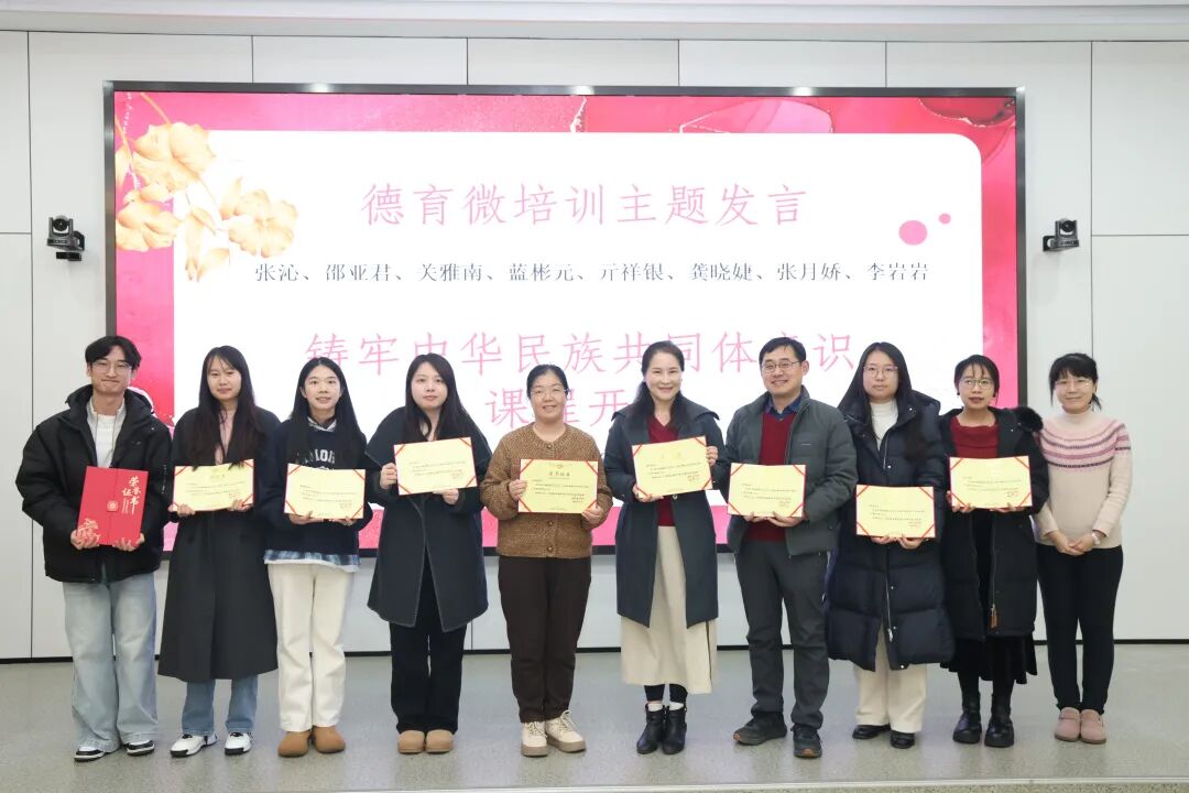 大会以“2025学年第一学期德育活动巡礼”暖场视频拉开帷幕,一个个记录七中学子成长的片段,串联起学校德育工作的足迹。随后,大会聚焦 2025 年度德育工作成果,对多类表现突出的德育活动予以表彰,涵盖德育微培训主题发言、铸牢中华民族共同体意识课程开发、第二十一届班主任节奖项及第十四届长三角班主任基本功大赛获奖成果(获奖名单见附件)。在热烈的掌声中,获奖教师依次登台领奖,学校领导为他们颁发荣誉证书,见证深耕细研后的硕果。
