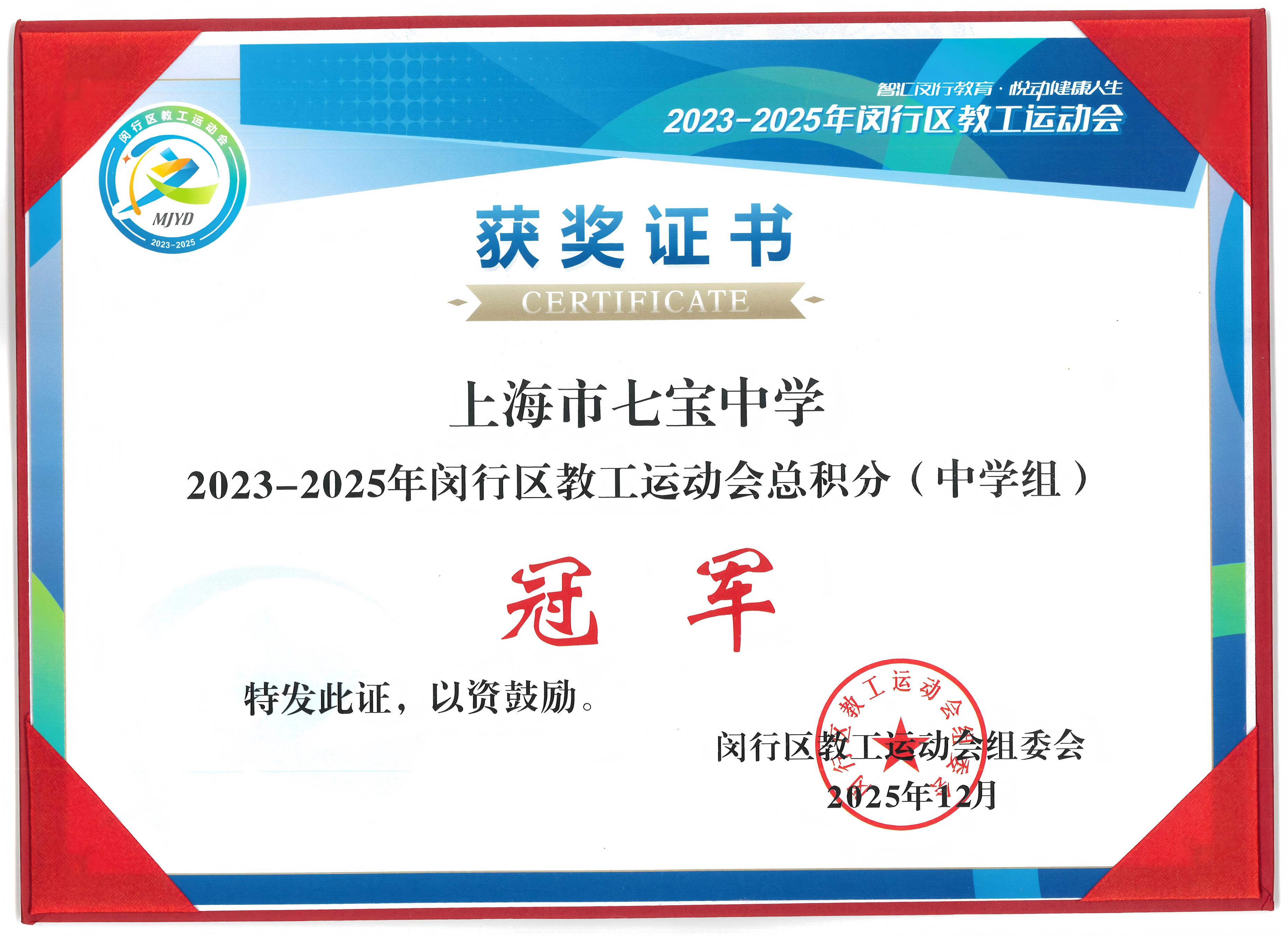 2023-2025年闵行区教工运动会总积分中学组冠军、杰出贡献奖