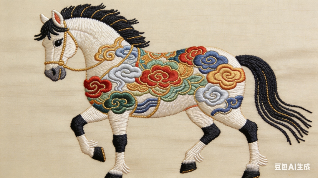 这款非遗国风马以2026马年为载体,将苏绣与云锦两大非遗工艺融入骏马形象。骏马鬃毛以虚实乱针绣层层晕染,还原毛发蓬松质感,躯干以缠枝莲云锦纹样为底,朱红与石青交织碰撞,勾勒出雅致又大气的东方美学。它承载着传统非遗的温度,诠释了龙马精神的古典意蕴,让非遗之美在当代重焕生机,彰显文化传承的创新活力。