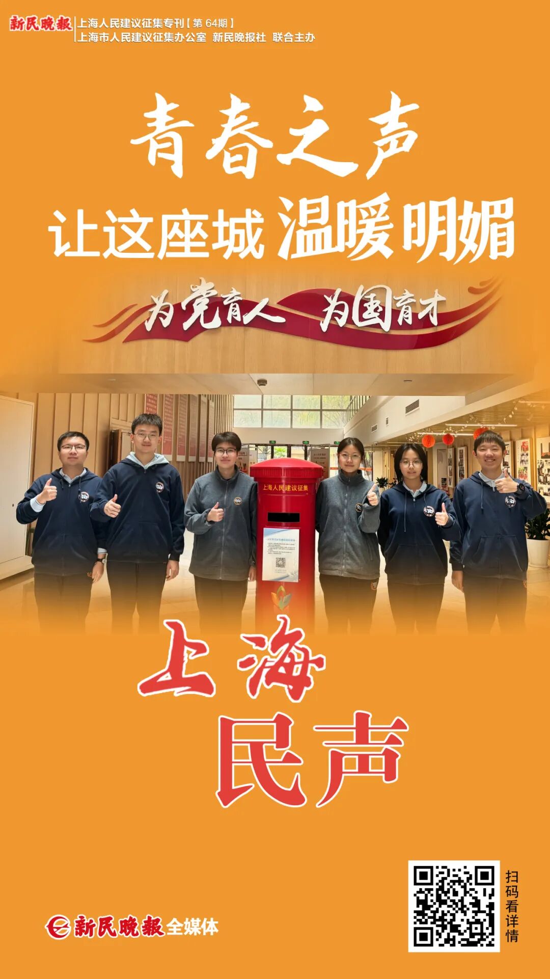三年来,七宝中学以红色邮筒为载体,以三题转化实践育人模式为支撑,让学子在城市治理实践中练就真本领、践行大担当。近300项课题、50余个落地建言,让青春智慧持续转化为城市发展实效,红色邮筒也成为厚植学子家国情怀、培育社会公共参与能力的重要阵地,让协商民主与制度自信的种子在青春心田生根发芽,也为青年参与社会治理写下了生动的七中答卷。
