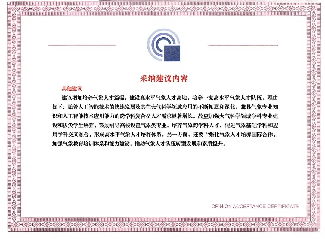 2024年12月,七宝中学气象社团学子在指导老师王丹舟带领下,深入研读《上海市气象条例(草案)》,围绕气象专业人才培养等方面提出修改建议,其中1条建议被市人大常委会完全采纳,获上海市闵行区人民代表大会常务委员会颁发的意见采纳证书,让青年视角融入城市法治建设。学生们积极参与立法实践的努力获得高度认可:王丹舟老师被授予七宝镇基层立法联系点的“法治宣传员”称号,戴欣悦、张家倪、姚以琳、陈雯、王子铭、王晨硕、吴静怡等同学被授予“小小法制宣传员”的光荣称号。