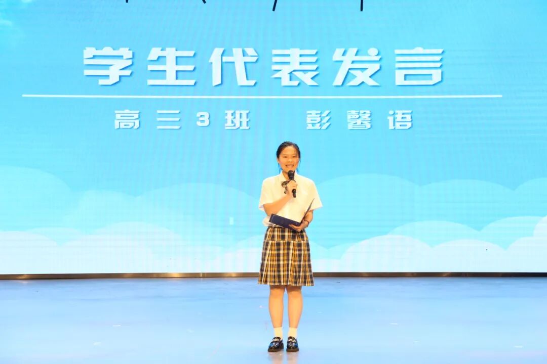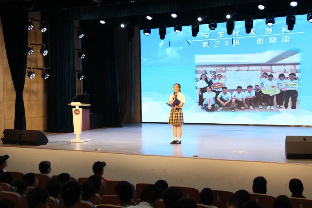 典礼的尾声,校团委秘书部高三(3)班的彭馨语同学作为学生代表,深情分享了她在社区挂职锻炼期间的感悟与收获。她的话语中充满了对实践的热爱与对创新的渴望,激励着在场的每一位同学勇往直前,不断探索未知,追求卓越。