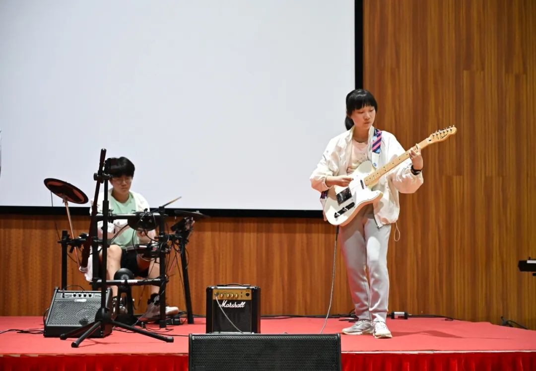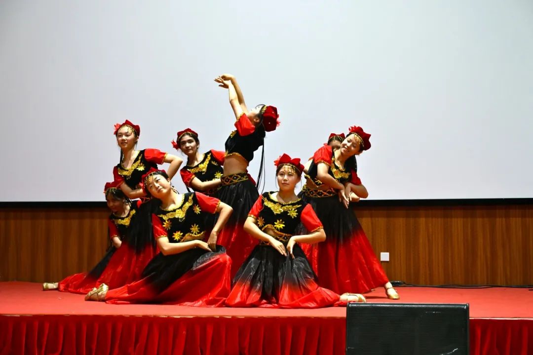 晚会上节目形式丰富多样:有的同学带来活力四射的歌唱表演,轻快的旋律瞬间点燃现场氛围,不少同学情不自禁跟着节奏摇摆;有的同学献上优雅动人的舞蹈,流畅的动作、特别是模仿孔雀开屏的惊艳瞬间,引来全场由衷的赞叹与掌声;还有的同学怀抱吉他,以清新自然的弹唱,用悠扬的琴声与和谐的和声,为热闹的会场拂来一片轻松与宁静;也有同学带来了诙谐幽默的小品,他们生动的演绎引发台下阵阵笑声。