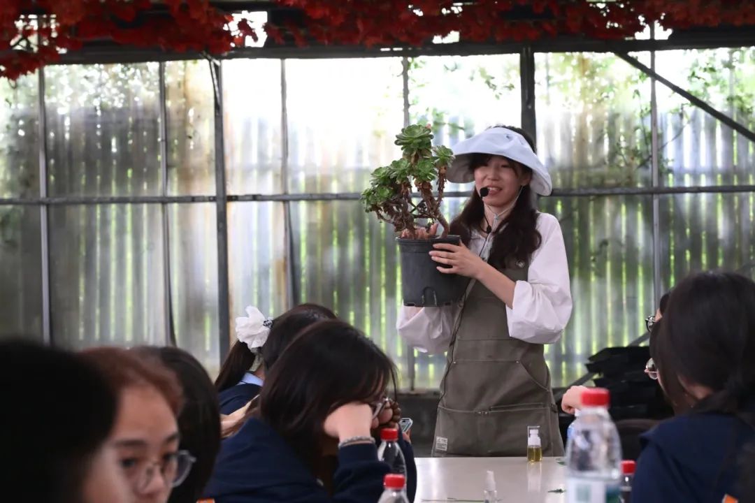 此次农艺体验远不止于此。实践基地精心设计了涵盖多元领域的丰富课程,如探索农耕内涵的传统农艺、感受指尖灵动的绒花制作、创造微观生态的微景观设计、挑战味蕾的西点烘焙、展现巧思的传统布艺、传递文化的农产品直播等二十余项精彩活动,让每位同学都能在实践中找到兴趣所在,深刻体验手脑并用的真谛。