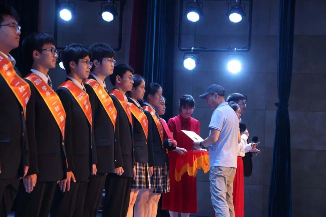 高二年级组长方志翔老师为未来杯演说家市赛获奖选手、学生宣讲团优秀成员颁奖。他们在不同的舞台上,用行动展现青春作为、彰显青春风采、贡献青春力量。