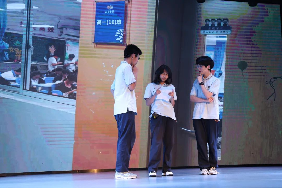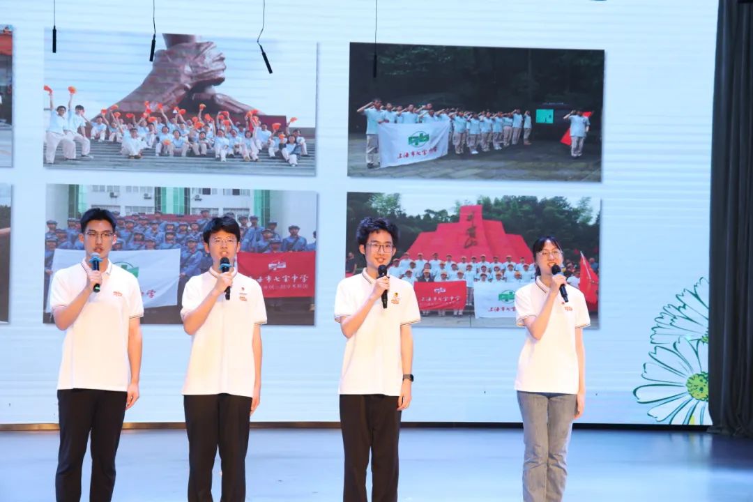 青春导师团成员、七宝中学优秀毕业生郑硕学长、校团委干事唐予洁老师,携手“未来杯”演说家市赛获奖选手顾和、李思睿同学,带来了主题演讲——《向光而行》。他们结合自身的支教经历与真切的时代观察,娓娓道来,带领同学们回望七中师生的来时路,感受青春信仰的力量。