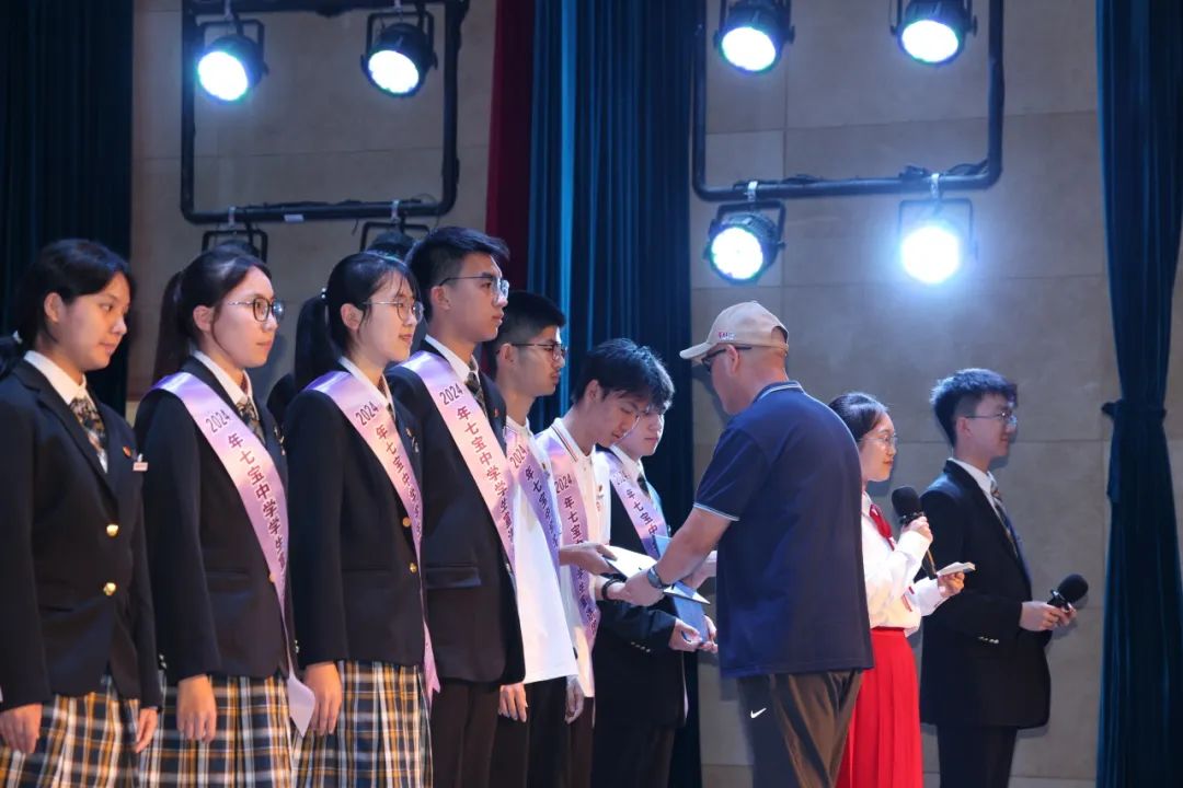 校党委书记、校长朱越、副校长刘树田、校党委副书记岑哲、副校长李波、现代教育信息中心主任朱莉老师、高一年现代级组长常宝国、高二年级组长方志翔老师,以及学工部、校团委、教工团支部等学校各部门的领导、老师,各团支部辅导员——班主任老师们,各支部、班级的学生干部和学生代表们,一同见证了七中团学工作的高光时刻。