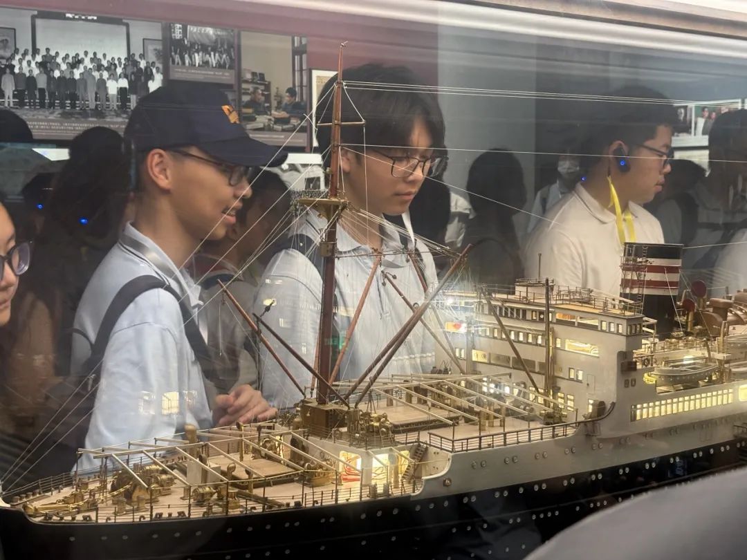 接着,同学们步入交大校史馆。泛黄的校旗与早期校舍模型静静陈列,南洋公学初创时的筚路蓝缕,仍在时光里传递着拓荒的动容;展厅中央,“交通大学西迁”全景图气势恢宏,数千名师生扶老携幼、跨越万里山河的身影,在时空里镌刻下“与国家民族同呼吸共命运”的担当;钱学森学长的留学日记与归国船票隔空相望,“五年归国路,十年两弹成”的赤诚,至今仍震颤着每一颗走近的心灵。当目光拂过“中国电机之父”钟兆琳的备课笔记,杨嘉墀院士的航天实验手稿,指尖仿佛触到了滚烫的温度 ——那是一代代交大人用智慧与热血熔铸的“求真务实、开拓创新”精神丰碑。临别回望,这座校史馆从来不止是历史的容器,更是一盏照亮青年学子前路的精神灯塔。