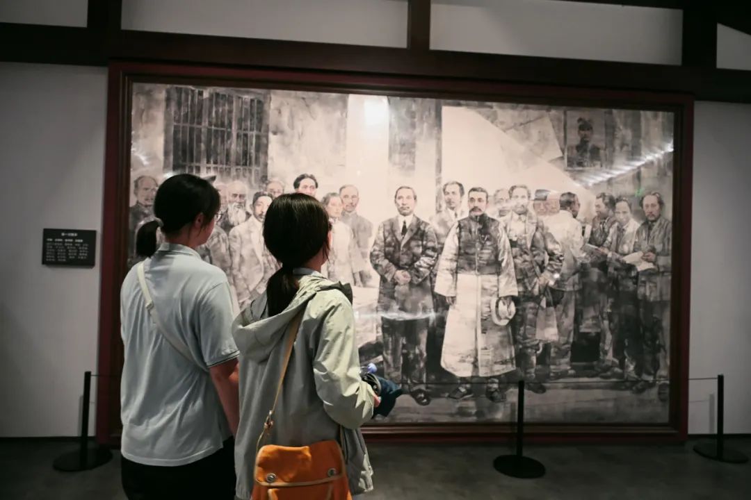 第二天,侵华日军南京大屠杀遇难同胞纪念馆的灰色建筑群在晨光中更显凝重。馆外水池里,同胞挣扎的雕塑凝固着1937年的至暗时刻;馆内,泛黄的照片、冰冷的数字、幸存者的泣血证言,将那段民族伤痛赤裸裸地铺展在眼前。同学们以“无声行走”的方式进入展馆。在遇难者人数石壁前,同学们拍下“300000”字样,感慨道:“和平不是理所当然的,需要一代代人去守护。”