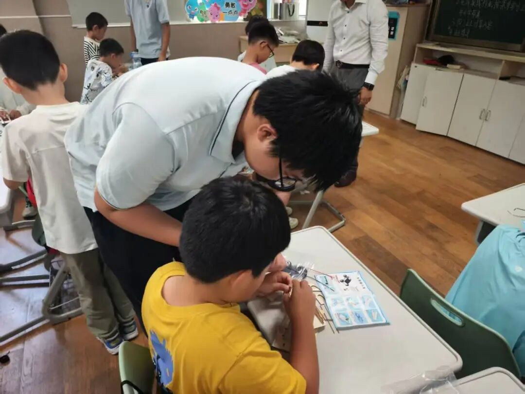 暑假,新高二年级的志愿者们开启了“强强少年宫”活动的志愿服务之旅。本次志愿服务中,十五名志愿者分为三组,分别协助开展“音浪探险家”“巧手编织中国结”“双碳课程:认识太阳能”三个特色课程,帮助不同年龄段的小朋友学习新知、收获成长。