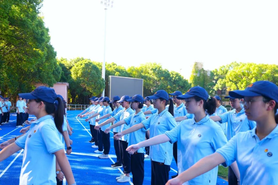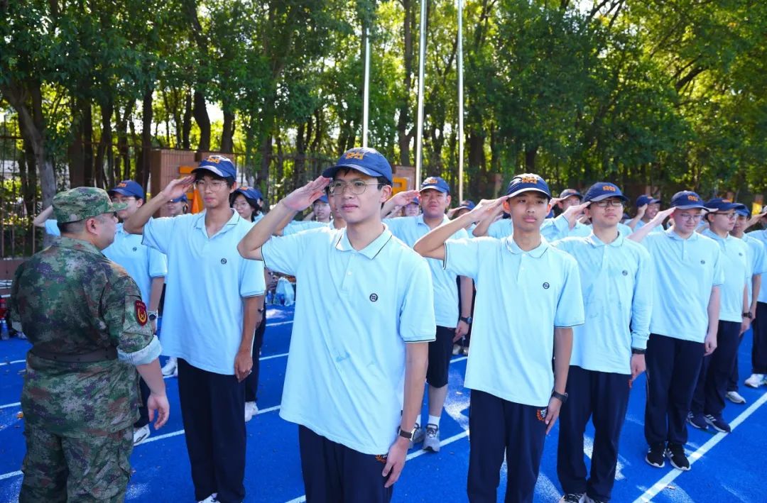 升旗仪式结束后,各连队随即投入紧张训练。教官们带领同学们复习了站军姿、停止间转法等内容,并展开跑步及行进的训练。同学们锲而不舍,反复操练,动作愈发干净利落,队列也更为整齐划一。班主任与教官们全程认真督导、悉心陪伴,与同学们共同度过这段难忘的军训时光。