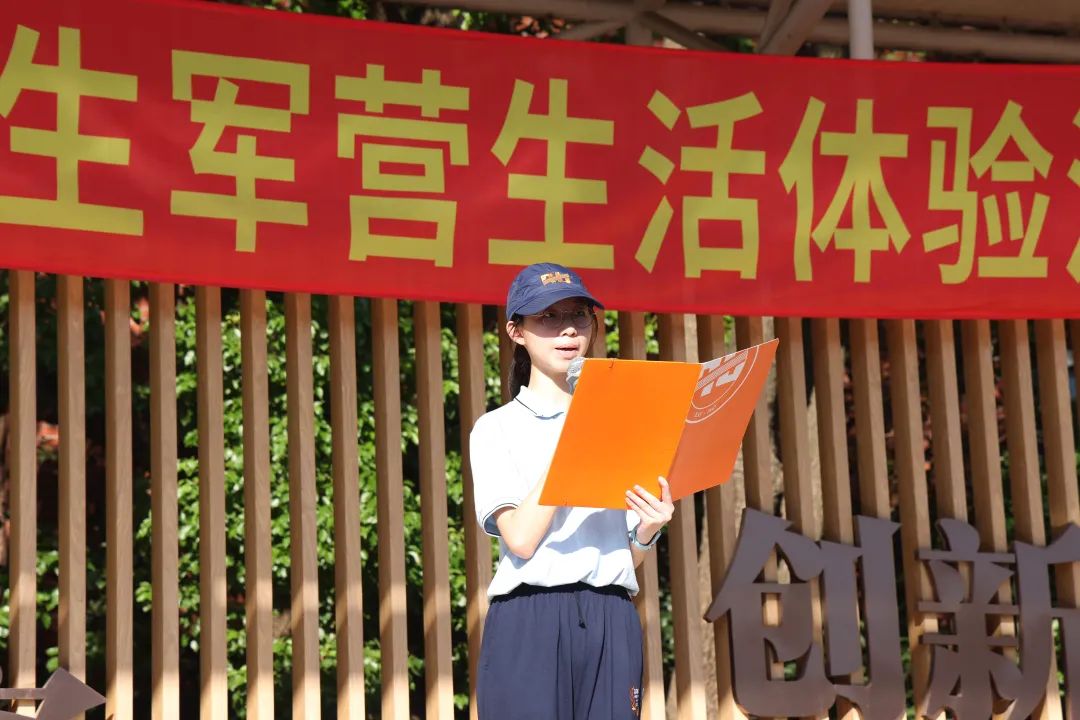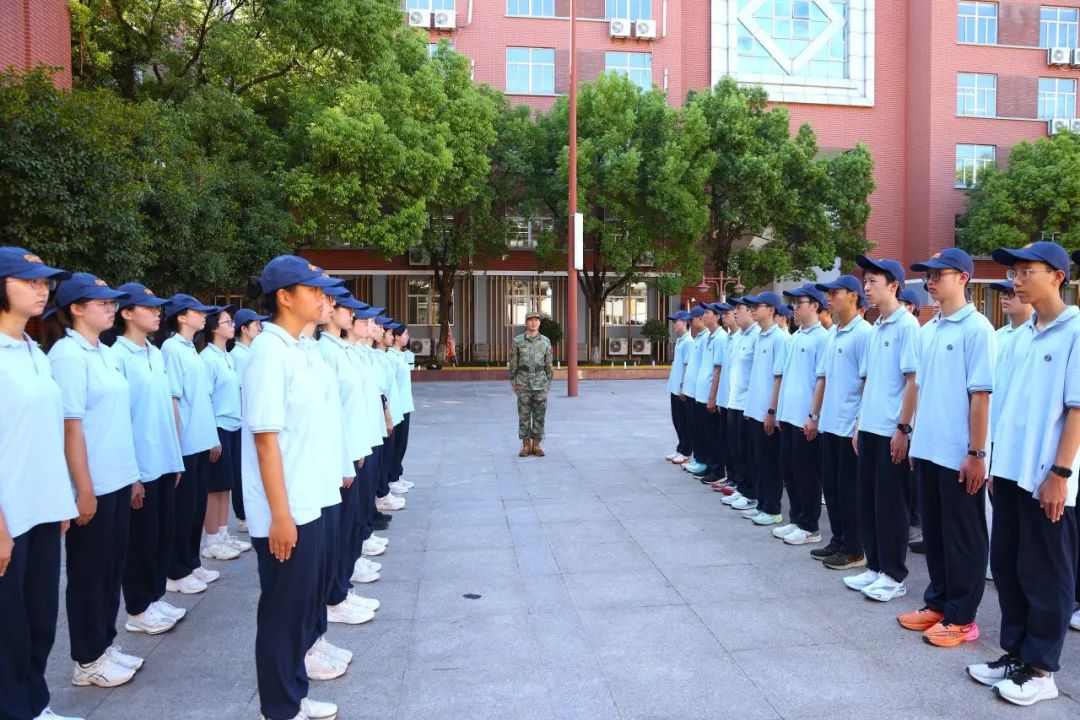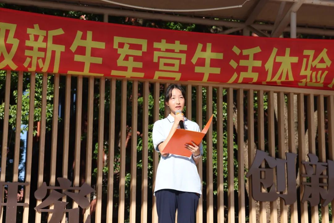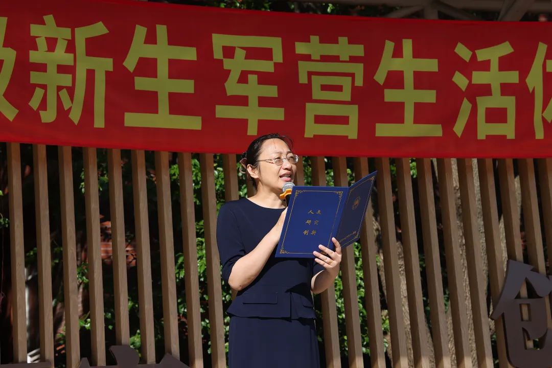 学工部副主任沈慧莉老师作总结讲话。她首先表彰了在前两个军训日中表现优异的“满分宿舍”,随后就内务整理方面指出了仍需改进的细节。最后,她以校训勉励大家,希望同学们保持热情与定力,迎难而上,不断挑战和超越自我。