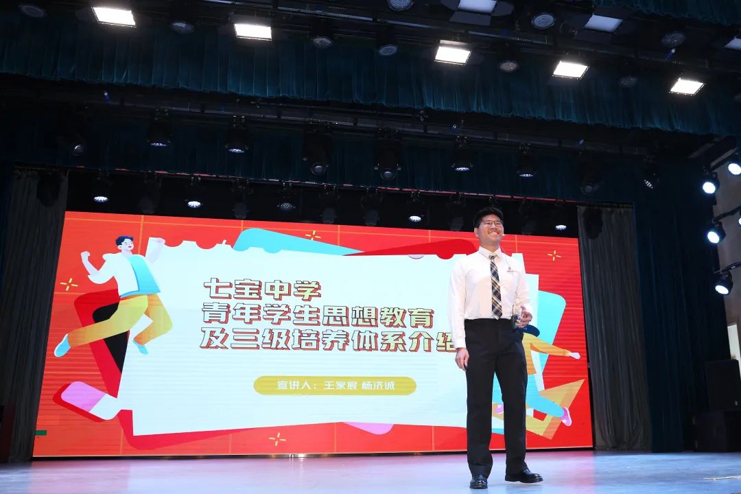 下午一点半,七宝中学学生宣讲团的学长学姐们为高一“萌新们”带来了精彩的宣讲。本次宣讲,由文茵主持人社副社长刘洋同学主持。