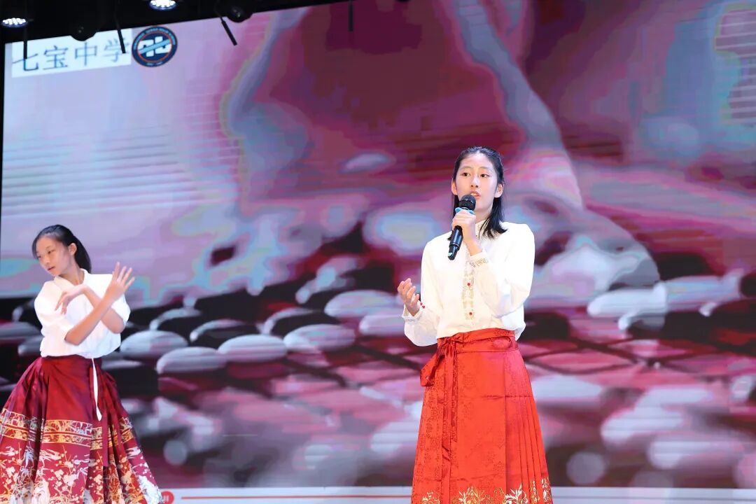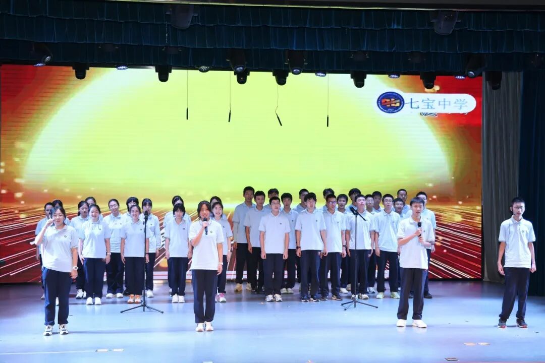 晚会上,全年级同学精心准备的节目逐一登场。开场歌曲《welcome to Qibao》唱出了同学们对高中生活的憧憬与期待,瞬间点燃全场气氛;歌舞《有我》以激昂的旋律和铿锵的舞姿,再现百年来中国青年勇担使命的誓言;情景舞蹈小品《军训二三事》则幽默还原军训生活中的趣事,生动的表演引得掌声与笑声不断。整场晚会节目形式多样、创意频出,气氛热烈,精彩纷呈。