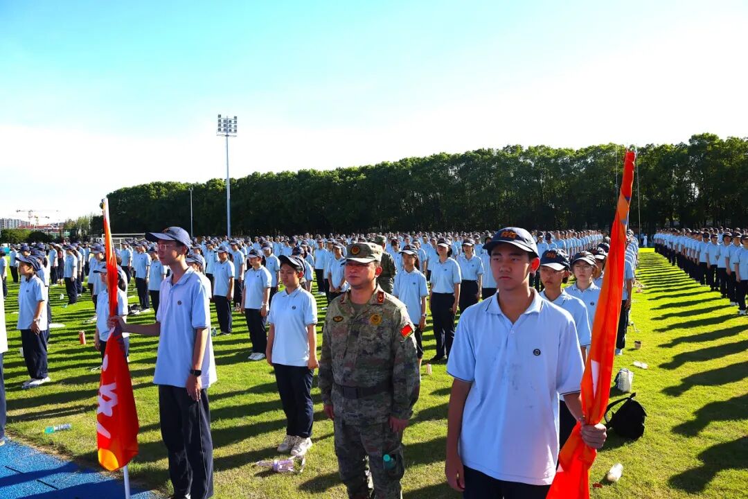 升旗仪式由高一10班祝司禹同学主持,随后高一11班杨铭芝同学发言,她总结了前几日的军训收获,并代表全体新生对军训期间悉心指导和陪伴的教官、老师及工作人员表达了真挚的感谢。