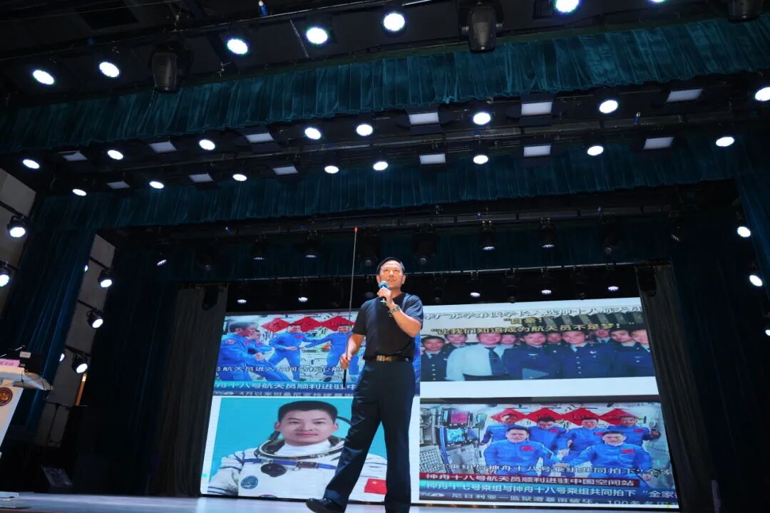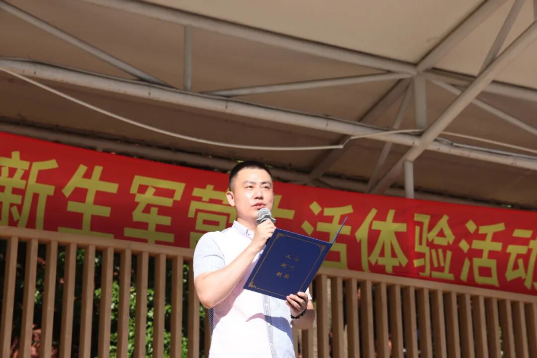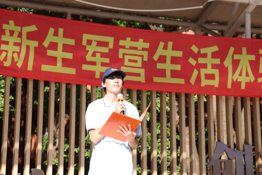 学工部副主任朱思天老师讲话,他对2025级军训自管会成员及精心策划、排练联欢晚会的全体同学提出表扬,并鼓舞同学们再接再厉,在军训后两日砥砺奋进。