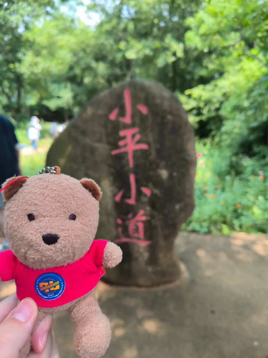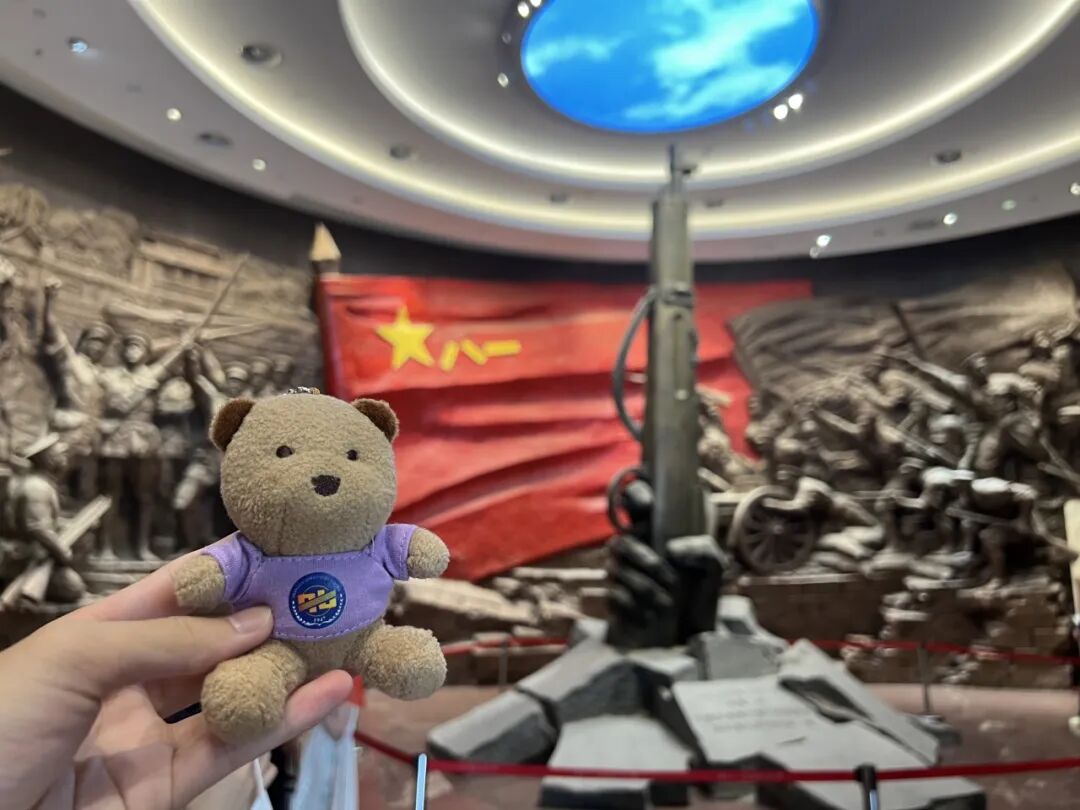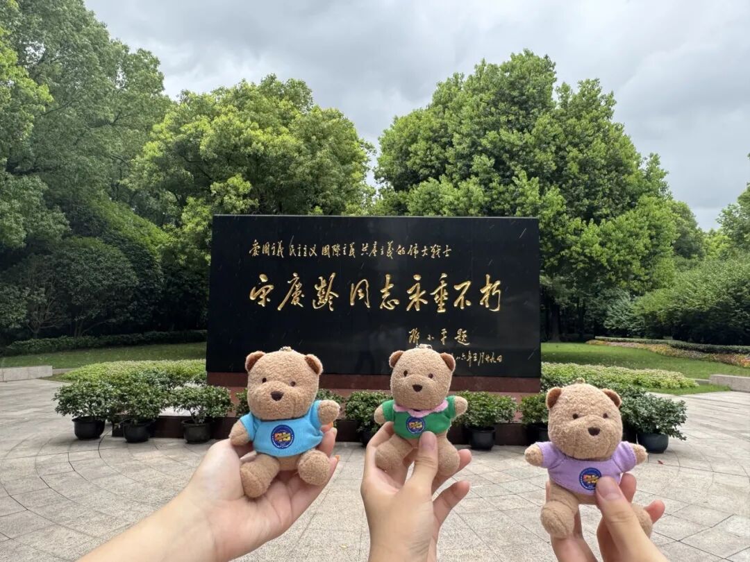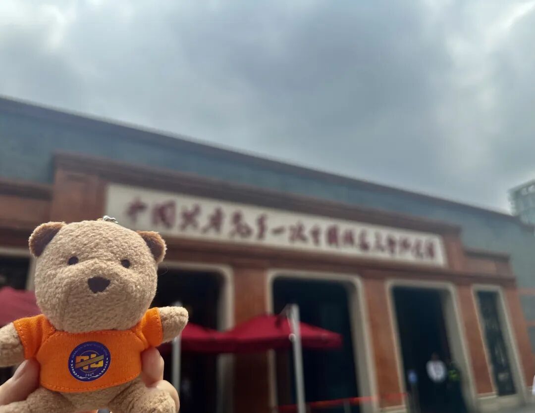 七中团员创新开展了“带着小熊去研学”实地丈量历史活动。同学们手持学校特色文创“七中小熊”,走进中共一大会址、小平小道等红色地标。