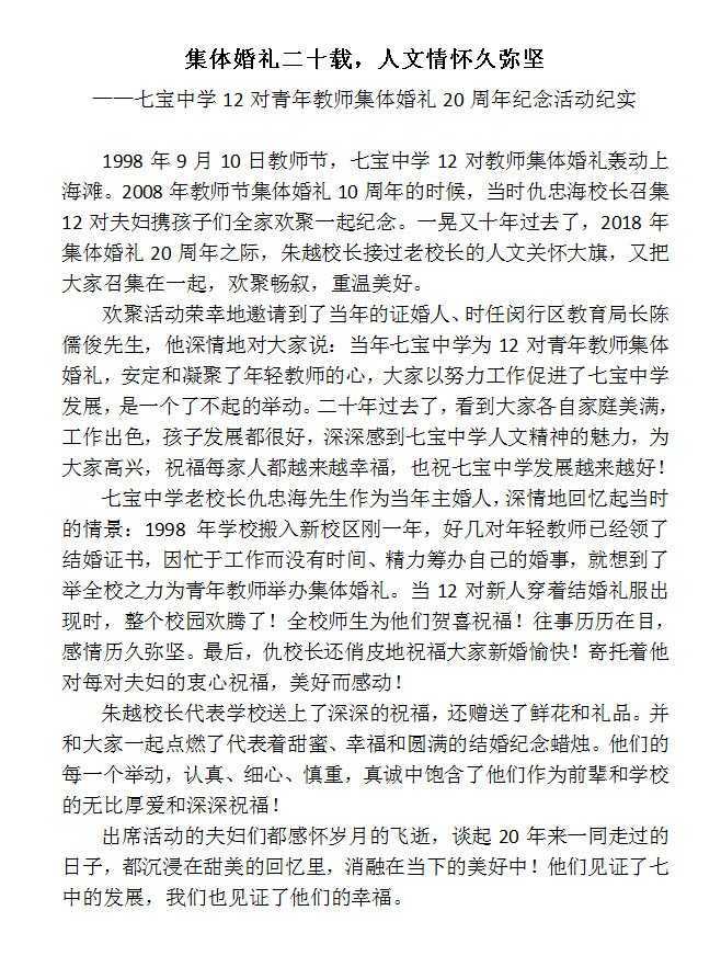 七宝中学12对青年教师集体婚礼20周年纪念活动纪实