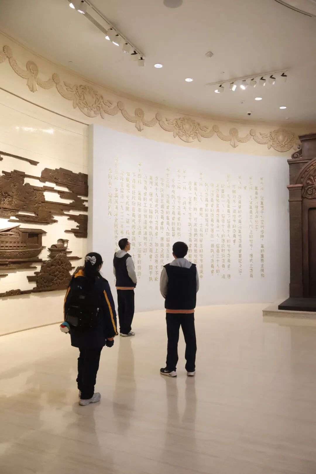 2月26日,红船社在蓝彬元老师的带领下,走进中共一大会址纪念馆及长征胜利90周年纪念专题展馆。步入展馆,一幅融汇了一大会址、天安门、长城等地标的恢宏画作映入眼帘,诉说着党的百年征程。在长征专题展区,社员们通过实体沙盘感受万里征途,聆听长征组歌,凝视红军水壶、草鞋等珍贵文物,深刻感悟革命先辈的坚定信念与奉献精神。