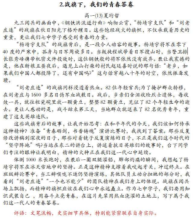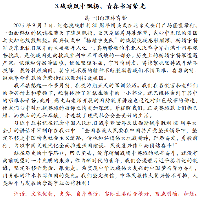 撰稿:校团委组织部长 高一(2)班 宗欣妍
