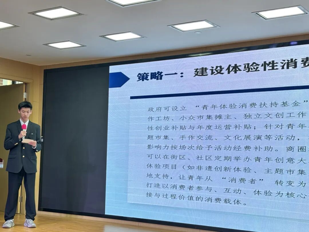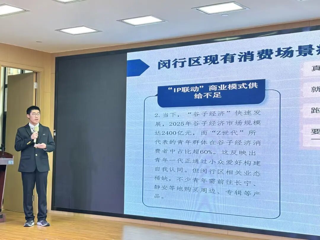 接着,提案展示环节采用“展示+模拟记者提问”形式。四校学子各展风采,我校学子提案紧扣民生热点、贴合青年视角:《关于打造闵行区青年友好型消费新场景的提案》聚焦青年消费痛点,提出体验空间扶持、IP联动等落地路径;《放学后学有所栖——社区多方协同共创学习空间的提案》在区政协委员指导下已落地,新镇路自修室投入使用。