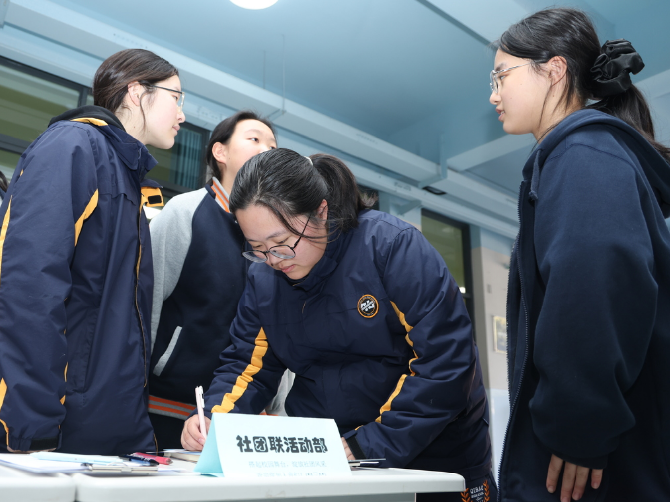同学们怀揣着对校园工作的好奇心,积极交流。他们认真了解不同岗位的要求,结合自身兴趣与能力选择意向部门。高一(1)班余梓熙同学激动地说:“部长们热情的介绍,还有那些精致的宣传海报,都勾起我对学生会大家庭的向往。真心希望自己能成为一名干事,为校园文化贡献一份力。”高一(13)班黄钰涵同学说道:“我怀着紧张的心情,填写了校团委理论学习部干事报名表,希望自己也能像学长学姐一样,以认真负责的态度服务广大同学。”