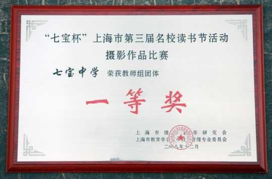2008.12七宝中学----获七宝杯上海市第三届名校高中读书节摄影比赛(教师组)团体一等奖(奖牌)