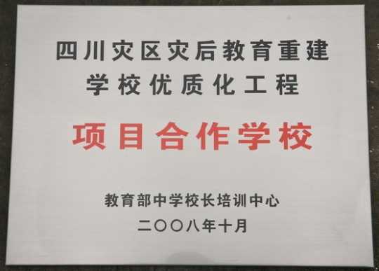 2008.04四川灾区灾后教育重建学校优质化工程项目合作学校(奖牌)