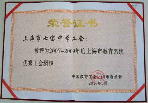 2010.05七宝中学工会----被评为2007--2009年度上海市教育系统优秀工会组织(证书).jpg