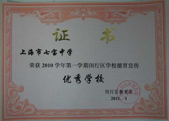 2011.01七宝中学----获2010学年第一学期闵行区学校德育宣传优秀学校(证书).jpg