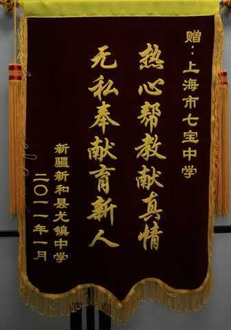 新疆新和县尤镇中学赠:七宝中学 热心帮教献真情,无私奉献育新人(锦旗).