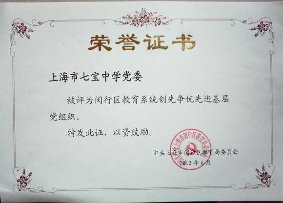 2012.06七宝中学党委----被评为闵行区教育系统创先争优先进基层党组织(证书).jpg