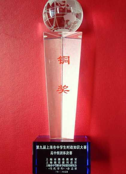 七宝中学----获第九届上海市中学生时政知识大赛高中组团体铜奖(奖杯)