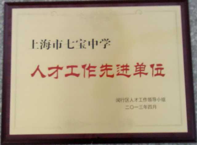 2013.04七宝中学----被评为闵行区人才工作先进单位(奖牌).jpg