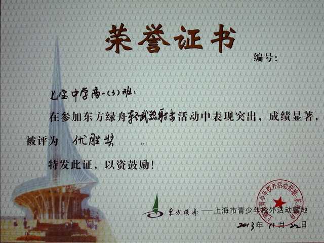 2013.11七宝中学高一3班----被评为东方绿舟活动轻武器射击优胜奖(证书).jpg