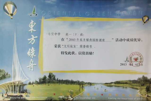 2013.11七宝中学高一5班----获2013年东方绿舟国防教育活动“文明寝室”荣誉称号(奖状).jpg