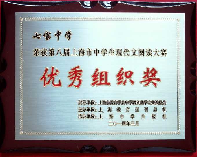 七宝中学----获第八届上海市中学生现代文阅读大赛优秀组织奖(奖牌)