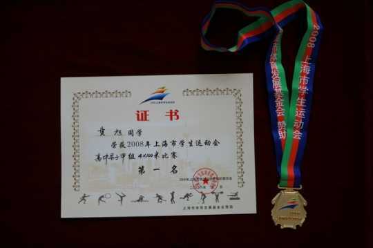 黄旭--获2008年上海市学生运动会高中男子甲组4×100米比赛第一名