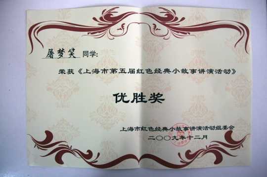2009.12屠梦笑同学----获上海市第五届红色经典小故事讲演活动优胜奖(奖状)