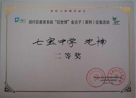 沈楠----评为闵行区教育系统“后世博”金点子(案例)征集活动二等奖(证书)