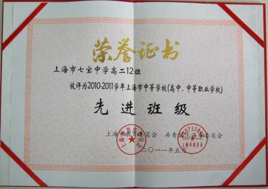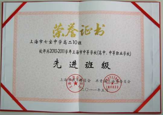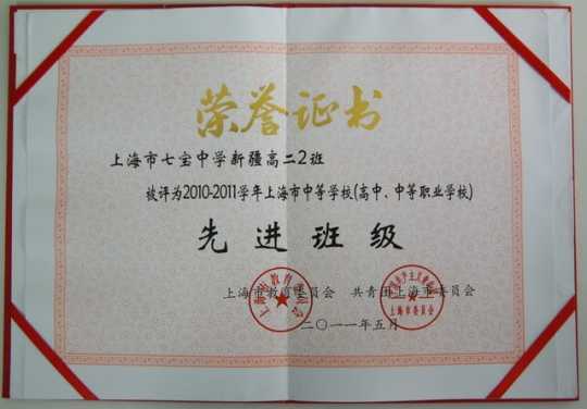 高二10班、高二12班、新疆高二2班----被评为2010-2011学年上海市中等学校(高中.中等职
