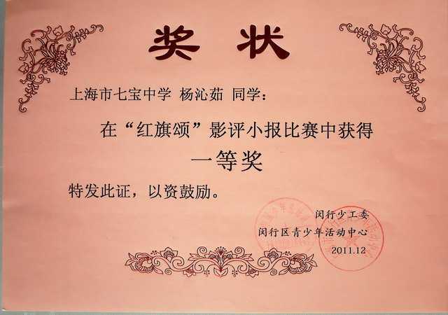 2011.12杨沁茹----获闵行区“红旗颂”影评征文比赛一等奖(高中组)(奖状).jpg