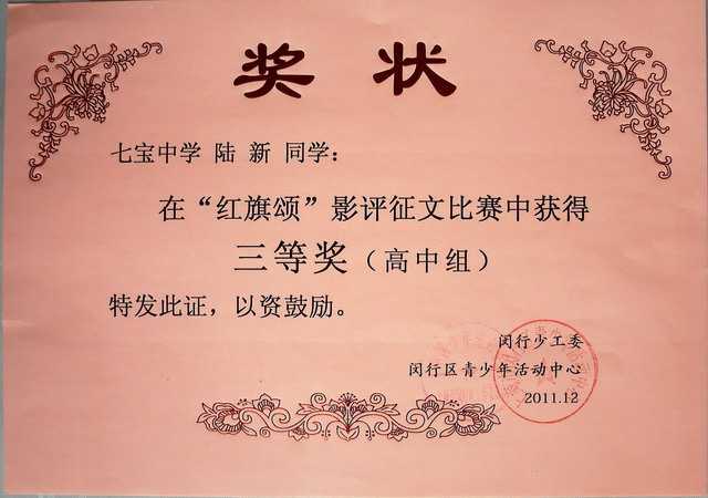 2011.12陆新----获闵行区“红旗颂”影评征文比赛三等奖(高中组)(奖状).jpg