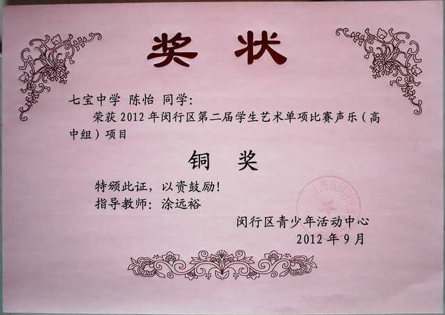 2012.09陈怡----获2012年闵行区第二届学生艺术单项比赛声乐(高中组)项目铜奖(奖状).jpg