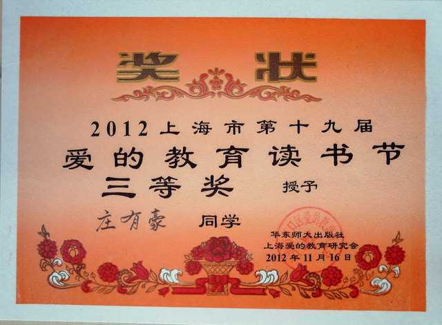 2012.11庄有豪----获2012上海市第19届爱的教育读书节三等奖(奖状).jpg